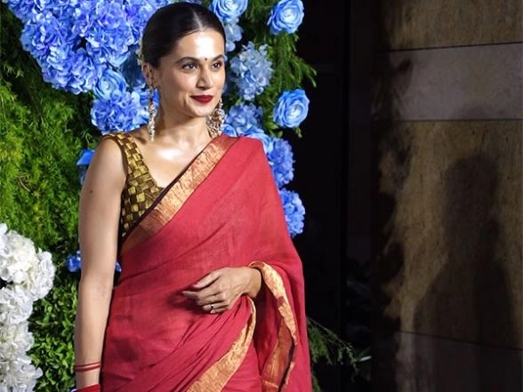After a long wait, actor Taapsee Pannu finally made her first public appearance post her wedding with Badminton player Mathias Boe. The actress was spotted at the wedding reception of producer Anand Pandit’s daughter Aishwarya and son-in-law Sahil in Mumbai.